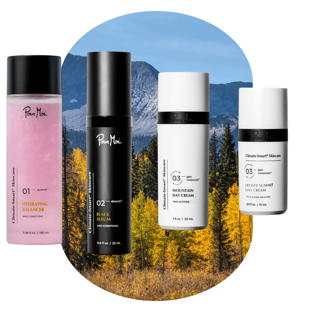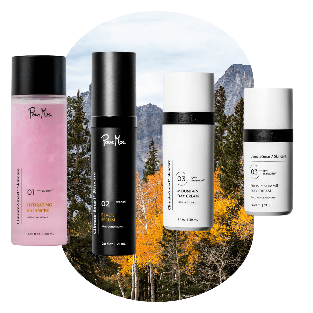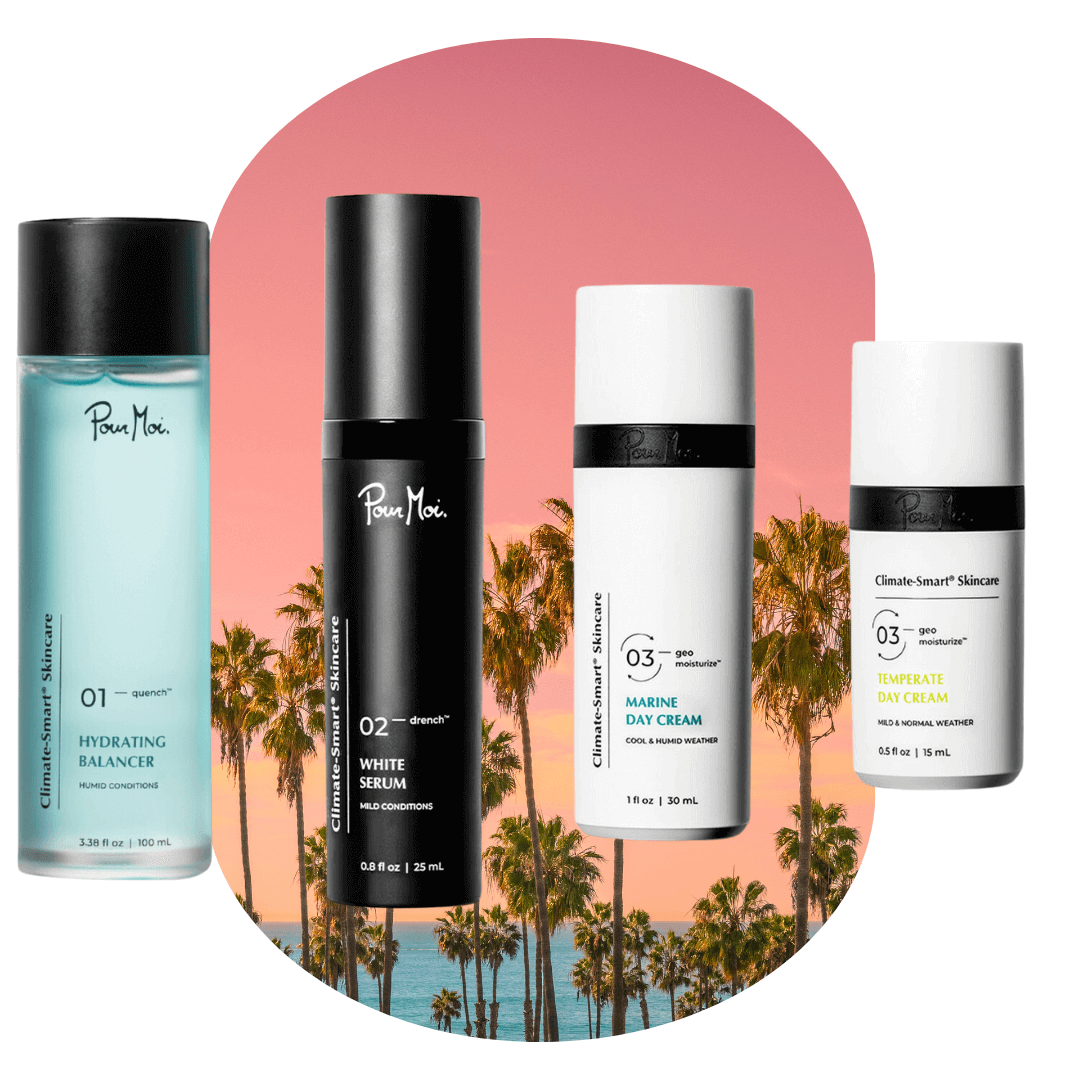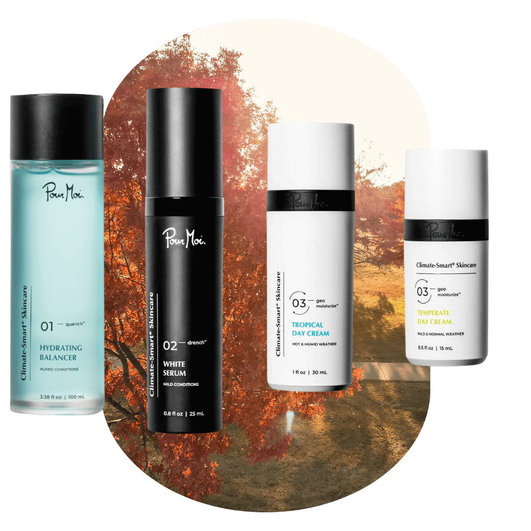 Our belief is that you can be happy, on the inside and outside, anywhere in the world. As an American company, we take pride in our mantra exclusive to the nation: The pursuit of happiness is a right, not a privilege. But being visibly and emotionally happy doesn’t mean we should be naïve about the external factors working against us, and that includes the poisonous air looming over our busiest cities and robbing us of our youth. Researchers urge citizens in populated cities to take matters into their own hands, and Pour Moi does most of the work for you. The only thing we can’t do is to come to your house and physically arm your skin every day. As much as we’d love to, that would be creepy. Pour Moi is the only climate smart skincare in the world, and we’ve thought of the issues that you don’t want to think about — changing climates, heightening pollution, aggressive radiation, and so on. You can continue to see the beauty in the world and quest for happiness while Pour Moi harmonizes with the elements, good and bad.