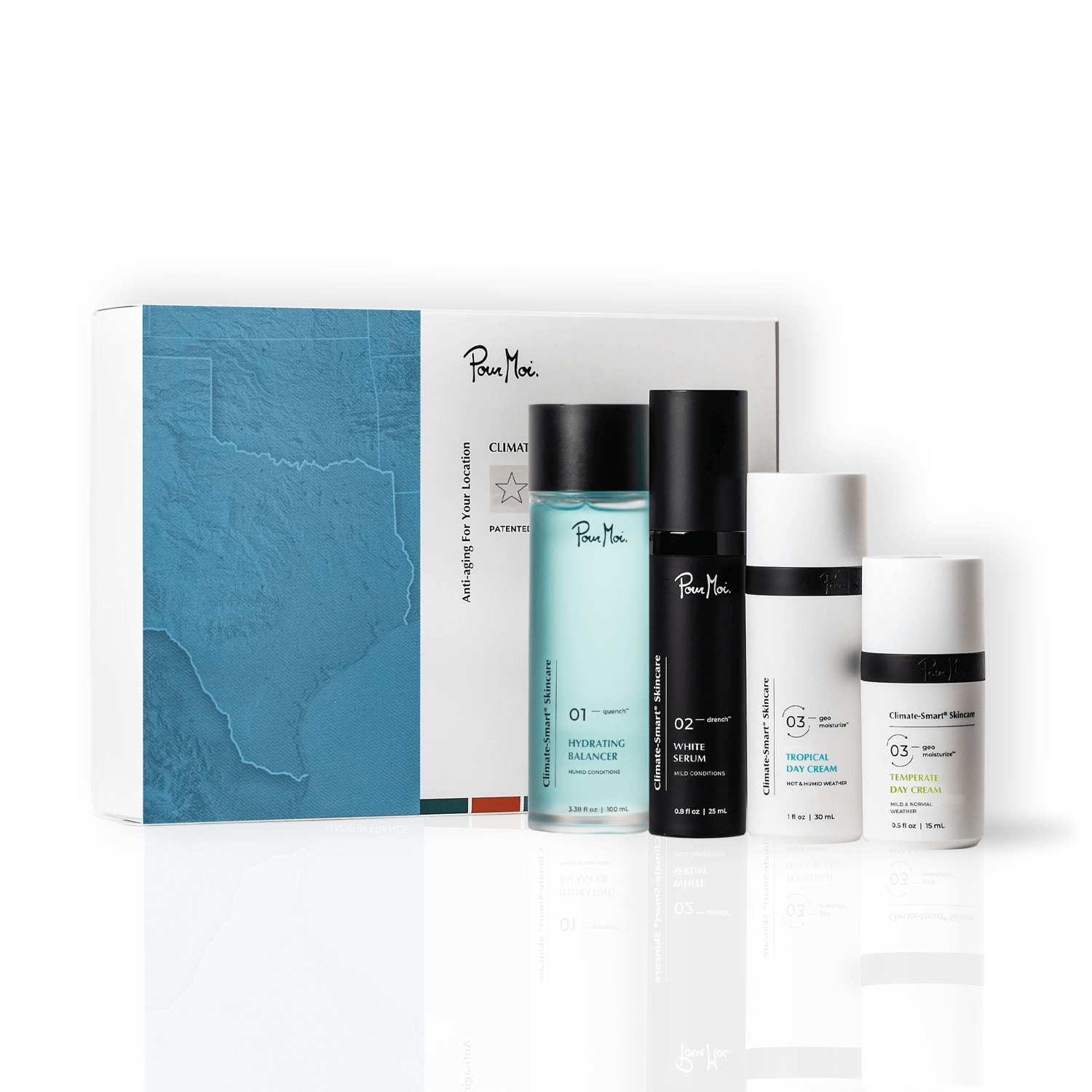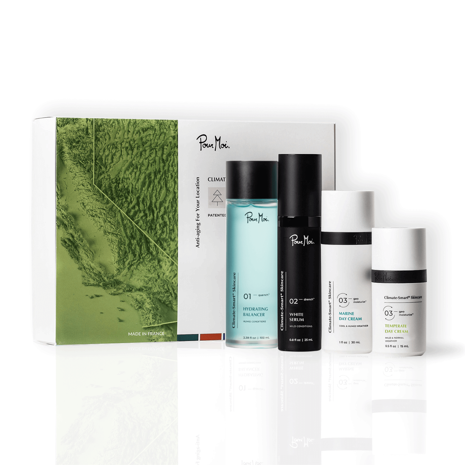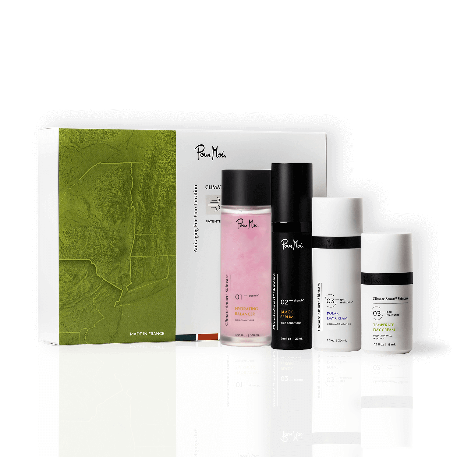 Our belief is that you can be happy, on the inside and outside, anywhere in the world. As an American company, we take pride in our mantra exclusive to the nation: The pursuit of happiness is a right, not a privilege. But being visibly and emotionally happy doesn’t mean we should be naïve about the external factors working against us, and that includes the poisonous air looming over our busiest cities and robbing us of our youth. Researchers urge citizens in populated cities to take matters into their own hands, and Pour Moi does most of the work for you. The only thing we can’t do is to come to your house and physically arm your skin every day. As much as we’d love to, that would be creepy. Pour Moi is the only climate smart skincare in the world, and we’ve thought of the issues that you don’t want to think about — changing climates, heightening pollution, aggressive radiation, and so on. You can continue to see the beauty in the world and quest for happiness while Pour Moi harmonizes with the elements, good and bad.